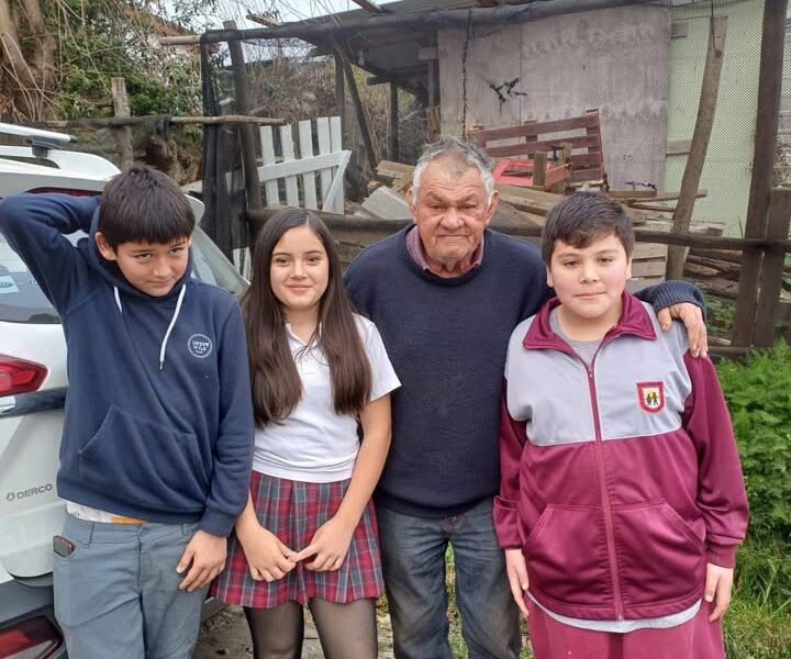 En el marco de las actividades conmemorativas del aniversario, los candidatos a reina y rey del 6°B, Maithe Guerrero y Alan Ramírez, junto a su compañero Pablo Castro, así como apoderados y la directiva del curso, llevaron a cabo una significativa visita a Don Nelson, un adulto mayor de escasos recursos que reside cerca del Mall Arauco de Coronel.